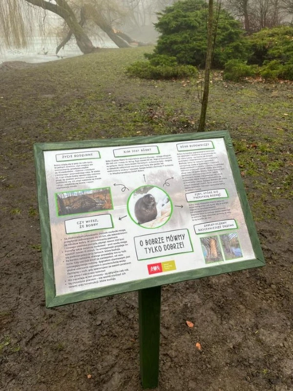 Edukacja mieszkańców – W parku zamontowano tablice informacyjne przybliżające życie i zwyczaje bobrów oraz ich znaczenie w ekosystemie.