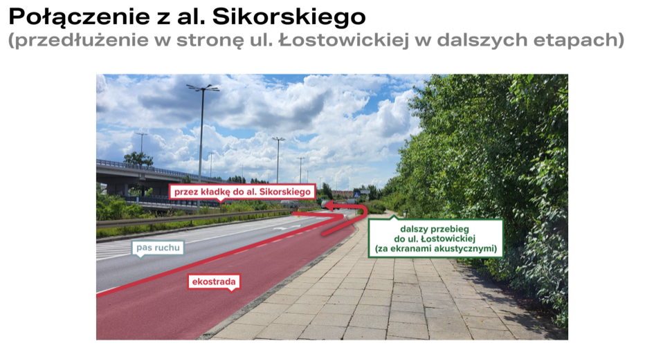 nowa ekostrada połączy się w tym etapie z istniejącą infrastrukturą wzdłuż al. Sikorskiego na Chełmie
