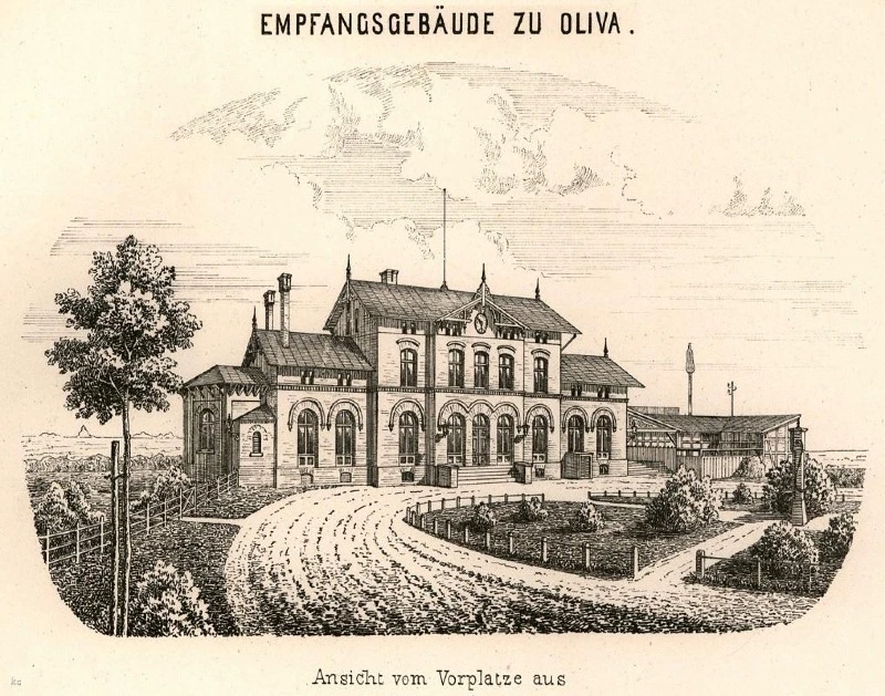 Dworzec kolejowy w Oliwie powstał w latach 1869-1870 wraz z budową linii Kolei Pomorza Tylnego, zrealizowanej przez Towarzystwo Kolei Berlińsko-Szczecińskiej. Była to pierwsza linia kolejowa, która połączyła Gdańsk z Wrzeszczem, Sopotem, Oliwą i dalszymi miastami Pomorza Zachodniego i Środkowego, w tym Stargardem Szczecińskim, Koszalinem i Słupskiem.