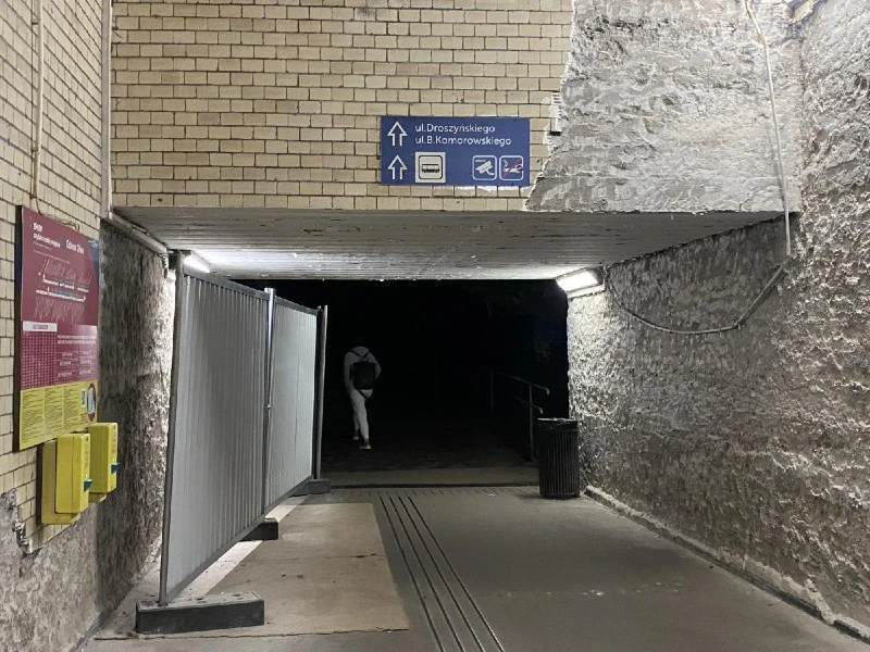 tunel przejścia podziemnego z wyjściami na perony kolei dalekobieżnej i podmiejskiej (SKM),