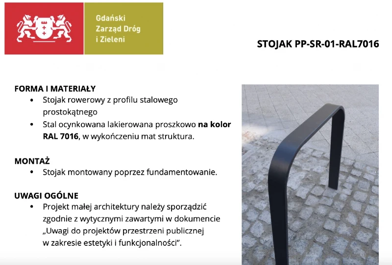 Jak jednak rozszyfrować, czym są stojaki typu SR1/SR2? To nic innego jak numer katalogowy danego mebla miejskiego w bazie Gdańskiego Zarządu Dróg i Zieleni.