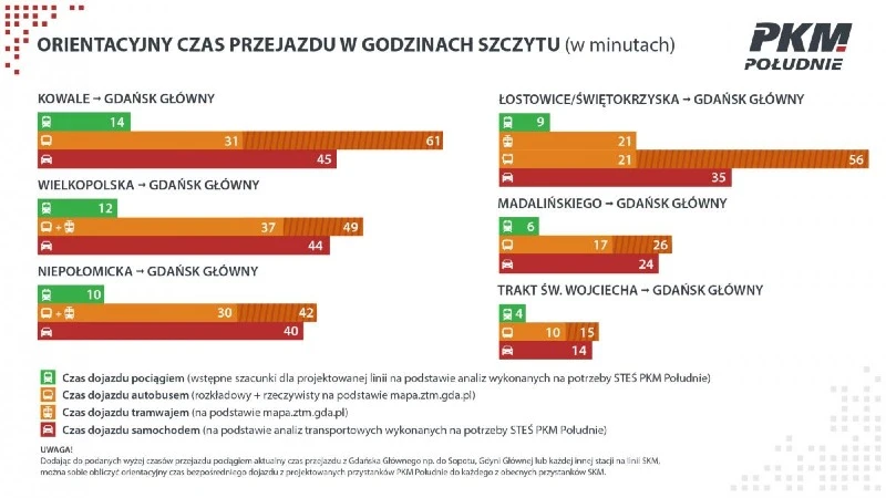 Nowa linia PKM Południe ma także ogromny, miastotwórczy potencjał, który wykracza poza samo usprawnienie transportu. Dzięki lepszemu połączeniu odległych dzielnic Gdańska, takich jak Kowale czy Orunia Górna i Ujeścisku, inwestycja przyczyni się do praktycznej realizacji idei miasta 15-minutowego, w którym podstawowe potrzeby mieszkańców - praca, edukacja, zakupy czy rekreacja są dostępne w niewielkiej odległości.