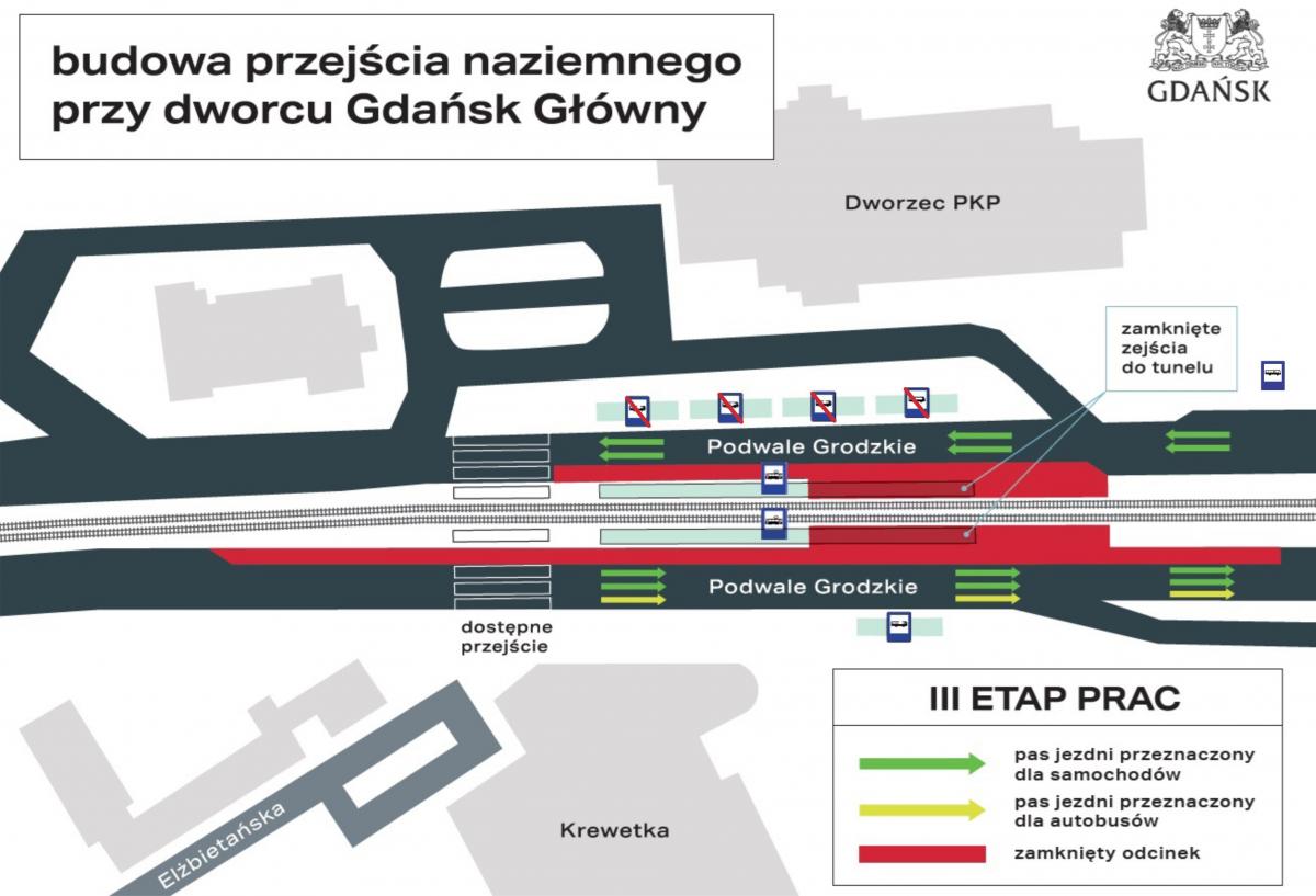 Głośna budowa przejścia dla pieszych przy dworcu kolejowym Gdańsk Główny wkracza właśnie w kolejny etap robót. Krytykowana przez wiele osób inwestycja ma zwiększyć dostępność tej części miasta dla pieszych, pasażerów transportu miejskiego, rowerzystów, a szczególnie osób o ograniczonej mobilności. Choć przejście zostanie ulokowane w stosunkowo odległym miejscu od wejścia na dworzec, to z pewnością skorzysta z niego wiele osób.
