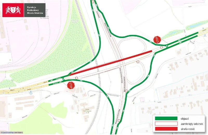 Objazdy w kierunku Wyspy Sobieszewskiej będą prowadziły przez węzeł Michałki oraz ul. Sitowie.